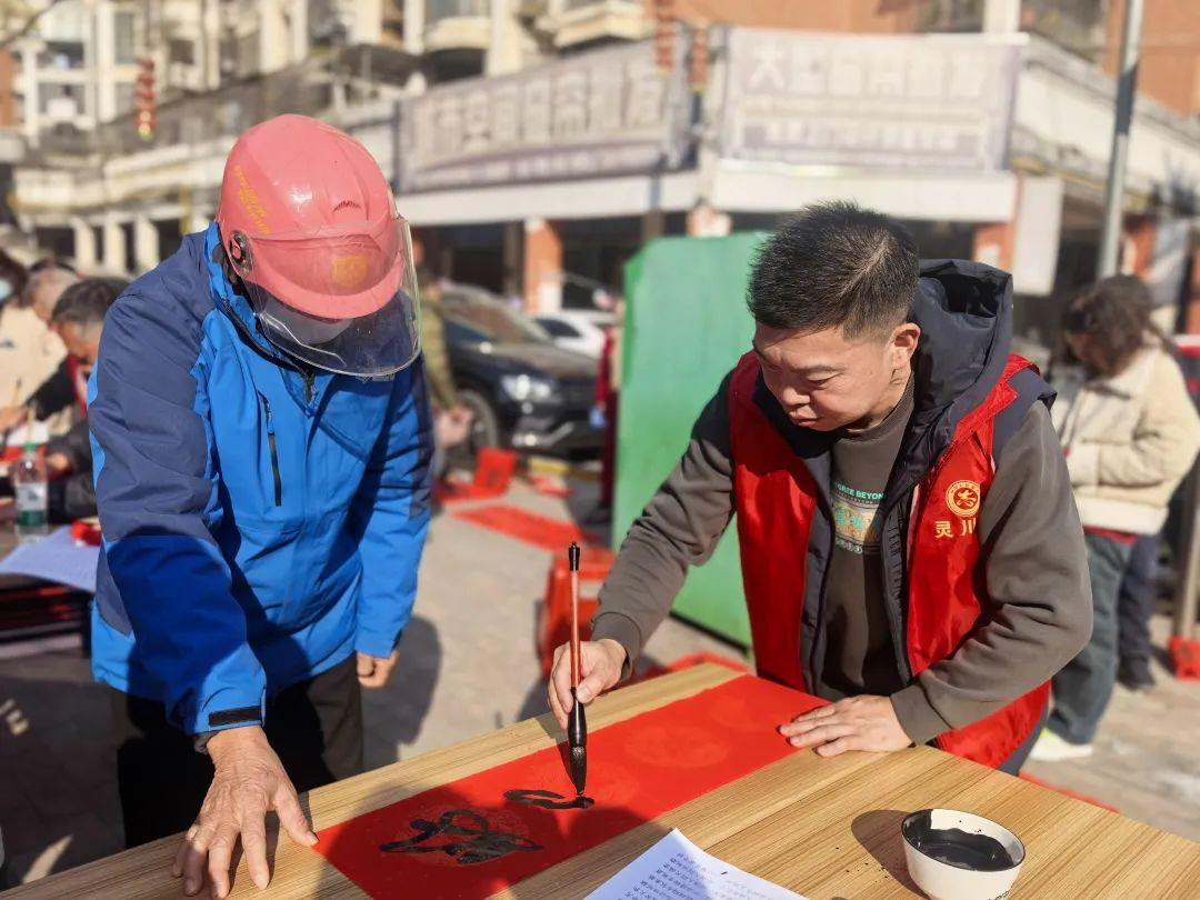 现场书法协会的老师们齐聚一堂,为居民朋友们义写春联,他们个个笔锋遒劲,挥毫泼墨之间,一副副寓意吉祥的对联铺满桌面,那一笔一画,都带着对新年的美好期许,对社区居民的深深祝福。
